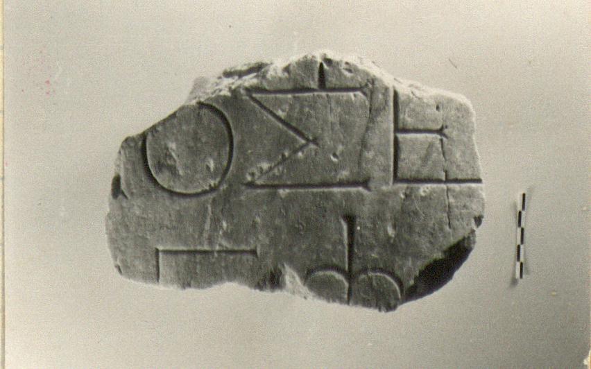 | Description: | Right side of relief, fairly even (seems cut and comes forward a little on front edge). Back rough-picked, convex surface. A little of top surface preserved (?), probably not much missing below. The head of the figure is gone with flaking off of marble above of face; feet missing; left arm not distinguishable. She wears a chiton girt at the waist, and stands with weight on left leg, the slightly bent right clear through the thin drapery. Her right arm hangs at her side. Close beyond it are traces of another standing draped figure. Surface much damaged. Shallow carving. Pentelic marble. | |
