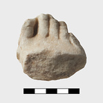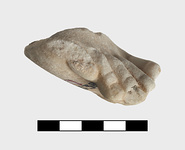 From a bare right foot, finished underneath. Seems to have touched ground, if at all, only with big toe. Marks of drill along inside edge of foot.
