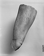 | Description: | Broken just above start of buttocks and below knee. Thigh and knee from right leg of standing nude male figure, life-size or slightly under. Front surface weathered, back fresh. Carefully modeled and very carefully finished all over, cf. S 1836 (ΟΕ 277) and S 1837 (ΟΕ 278). Island marble. | |