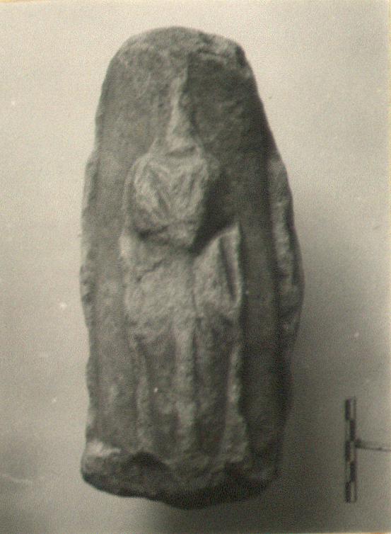 | Description: | Full height preserved but much battered. Three female figures in high-girt peplos over sleeved chiton stand against a thick column. One holds long torches. One has both arms lowered. Of the third only the right arm, lowered, remains. Symmetrical archaistic drapery. Peplos open on right side. Pentelic marble. | |