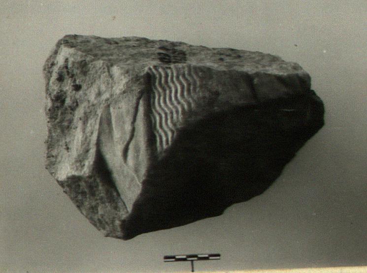 | Description: | Broken above and below. Apparently the hips of an archaic female figure, in crinkly chiton and symmetrically draped small himation, grasped around the top of the thighs by a nude male left arm, which is visible in back at the bottom of the fragment. The arm pushes the himation toward the left. Island marble. | |