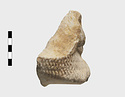 | Description: | Fragment of lower part of face of bearded archaic statue, much battered. Sharply pointed beard; trace of curve of neck preserved; mustache clearly visible without stylization of hair as in beard; finished surface around left nostril preserved. Pentelic marble. | |