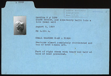 | Description: | Small bearded head with features almost completely obliterated, top of head broken off. Part of right cheek with beard and hair at back of head preserved. Poros. | |
