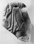 | Description: | Left forearm of small Kore, broken above and below. Joint surface at left. Arm was apparently attached separately. Folds on front seem to be short overfall of peplos worn above a chiton of which is visible in back. Late archaic. Parian marble. | |