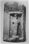 In a rectangular panel a herm in relief. Above the panel a picked surface as if something had been erased.