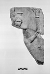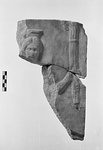 | Description: | Upper right hand corner of stele. At left woman's head facing front, hair parted in middle and wearing polos. Torch at right. Hymettian marble. Joins S 1614 ( Τ 1280). | |
