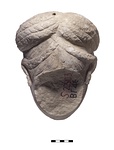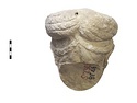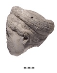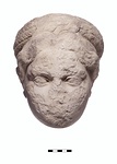 | Description: | Full head preserved, broken below chin and lower back. Face battered; nose, mouth and chin area much damaged. Hair in waves at temples with coronet of braids encircling head. Good carving of details. Large-crystal, white marble. | |