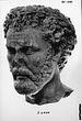 | Description: | Broken at neck; nose and a large area of back of head missing. Chips missing from curls of hair. Portrait of a bearded male, wearing a wreath of maybe laurel. Furrowed brow; drilled eyeballs, looking up. Mustache, eyebrows, edges of hair on forehead, and most of beard done with heavy wavy incisions. Center of beard on cheeks and hair on top of head incised as curls. Hair forward of wreath done as heavily incised and drilled curls. White crystalline marble. | |