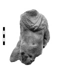 He wears a cloak draped over his upper chest and falling down his back. Visible rasp marks.
