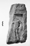 | Description: | Broken below and at left, very battered. Right side of relief plaque, carved in moderately high relief, preserving a nude male figure; weight on the right foot, right arm held out, left on waist, with forearm holding drapery. Head hatched off. Pentelic marble. | |