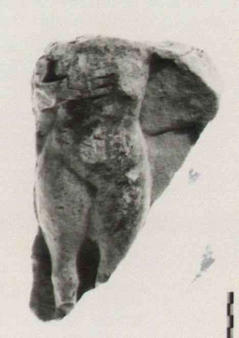 | Description: | Broken all around. Standing figure, facing front. Top half human, apparently female, lower half bird. Right hand held over right breast, left arm held away from body. Head missing. Crystalline white marble. | |