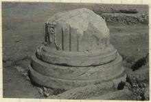 | Dimensions: | P.H. (altar) 0.69; H. (plinth) 0.25, (lower fascia of plinth) 0.10, (upper fascia of plinth) o.15, (lower fascia of altar) 0.10, (upper fascia of altar) 0.03; Diam. (lower molding of plinth)1.445, (upper molding of plinth) 1.365, (lower part of altar) 1.20, (from femur of triglyph) 0.975 | |