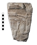 Description:   Piece of right side of grave relief. Border preserved at right. Right side and back preserved. Broken at top, bottom and left.