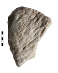 | Description: | Rough joint surface with anathyrosis at back. Some iron stain but no dowel or dowel hole preserved. Broad, curving, carefully finished himation folds from large statue. Parian marble. | |