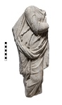 | Description: | Female figure crossing left leg, leans to her left and reaches over her right arm. Right arm and shoulder to mid-calf preserved. Few very thick folds with rasped surface. She wears chiton and mantle. Roman. Pentelic marble. | |