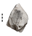 Head in high relief. Delicately carved, carefully detailed, short hair combed forward; furrow in forehead and carefully defined eye with tiny drilled corner.