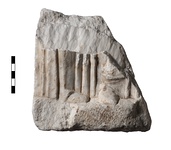 | Description: | Broken at top and right side; upper surface of front shorn off at an angle; left side preserved; back rough-picked. Two standing females (?). At left, figure facing right: two long straight folds of garment and right foot. At right side, figure facing front: left foot with folds of garment across ankle; standing on plinth. Pentelic marble. | |
