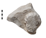 | Description: | Broken on all sides. Part of left background plane and frontal head of figure preserved. Frontal face of a woman with thick wavy coiffure, sheared off face. Mouth with drilled corners, rasped-smoothed left cheek and neck preserved. Part of chisel-smoothed background plane preserved on upper left. Roman. Pentelic marble. | |