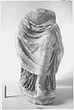 The figure wears a thin chiton with overhang and has an himation across the knees. She is seated, with the left foot advanced, upon a cushioned seat, which is hollowed out at the back beneath and rests on a low plinth.