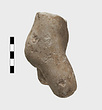 Nude with weight on left leg. Rough spot and malformation on inside of right thigh suggest left hand crossed here in pudica type. One vertical and one horizontal dowel hole in right thigh.