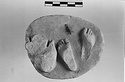 | Description: | Preserves irregular oval base with feet broken off through heels. Base of support, which was probably a water-jar with drapery over it. Feet in pose of Knidia. Pentelic marble. Cf. Hesperia 81 (2012), p. 338, n. 152. | |