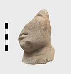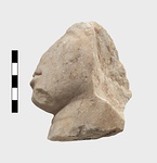 | Description: | Small head, from the Altar of Ares series (?), broken at base of neck and at top, back and right side of head; left cheek, mouth and chin preserved. Head tilted slightly toward the right. Pentelic marble. Cf. Hesperia 21 (1952), p. 94. Drilled for setting on base 1951. | |