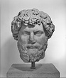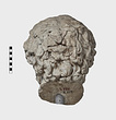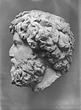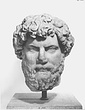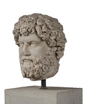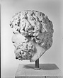 Description:   The head is considerably over life-size, broken off below the beard; the tip of the nose is missing, and the back of the head has a rectangular patch of hair (doweled on, with the dowel still in place).