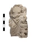 | Description: | Head, feet, right arm and lower left side of drapery are missing. Male (?) figure with the lower part of the body draped. The figure leans against a most complicated support consisting of two struts in the back and, on the left, a low pillar divided into sections and topped with two objects resembling respectively a cushion and a bolster. Two long locks of hair fall on the shoulders of the figure. The weight is on the left leg, with the right slightly bent. Yellow poros. ADDENDA Surely female - though non vidi (AFS). | |