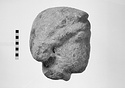 | Description: | Surface abraded and encrusted with mortar on right side of head. Broken at neck; nose, hair on right temple, and hair at back of head on left broken off. Face characterized by deep-set eyes and prominent brow ridge. Head tilts to right. Hairstyle consists of a row of ringlets across the forehead under a smooth mass of hair bound into a roll on the back of the neck and articulated with braids incised on the surface. Medium to fine grained white marble. | |