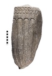 | Description: | Broken all around. Half of the body of a lekythos. Flaked and spalled surface. Decorated in a pattern of vertical tongues with a guilloche band at the top of the body just below the shoulder junction. The shoulder is decorated with vertical concave fluting. Fine-grained white marble with mica. | |