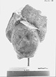 | Description: | Chopped off behind and much battered, the features nearly gone. The high coiffure is Flavian, with rows of snail-shell curls in an erection over the forehead, drill holes in the center of each curl. Round faces; traces of incised outline for pupil. Pentelic marble. Drilled for setting on base June 1950. | |