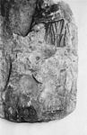Description:   Broken all around; rough-picked in front below the relief, which shows the lower part of a female figure, wearing chiton and himation.