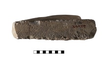 | Description: | Part of the left side, dressed with toothed chisel, and the rough-picked back, preserved; otherwise broken. The relief shows the mid-parts of a nude youth, facing right and bending forward. The body is broken away above the waist and above the knees. Marble. | |