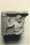 | Description: | The upper left corner of a base (?). The top is rough-picked; the left side smooth dressed. A bearded figure faces right, his body turned nearly to the front. His right arm is drawn back and up - the hand level with his head. Drapery over his left shoulder and lower body. Broken at the right and bottom, the figure lacks the left arm, and the body below the hips. White marble. | |