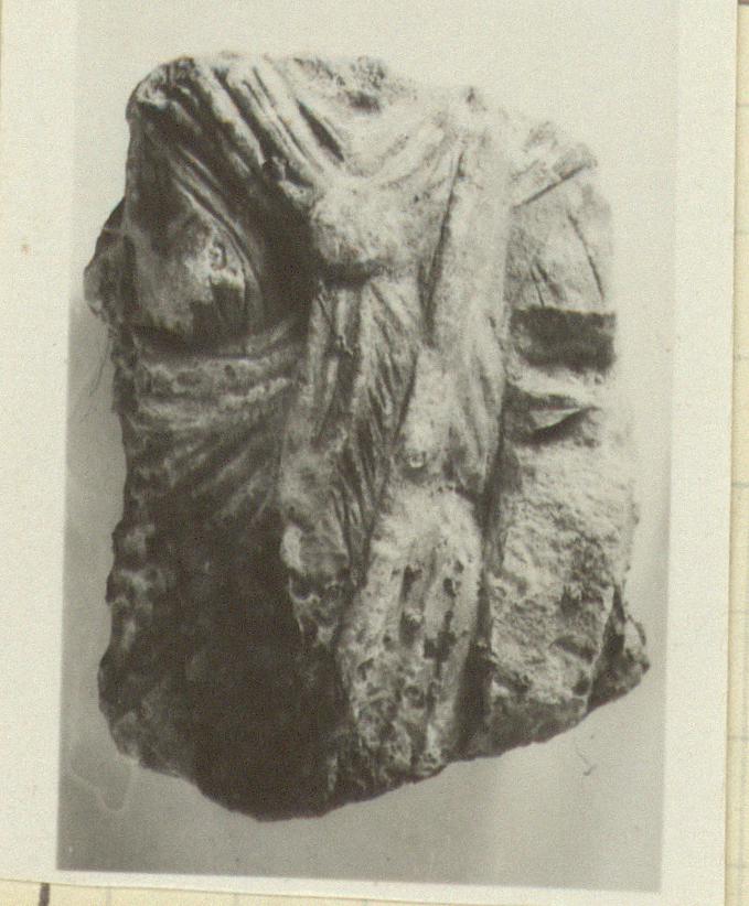 | Description: | The torso of a figure of Isis, showing the knot, fringe and cornucopia, broken off from the left side. Flat behind, possibly from a relief. Poor work. Pentelic marble. | |