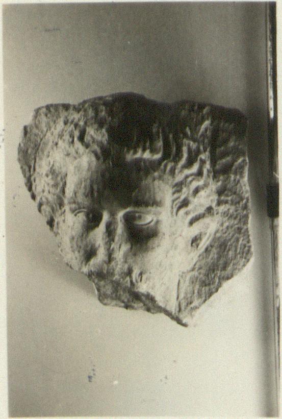 | Description: | The back of the relief preserved; elsewhere broken. Mouth and chin missing. Bearded male head facing. The pupils hollowed out. Stained from the cesspool. White marble. Drilled for setting on base December 1960. | |