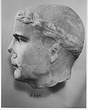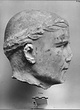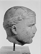 | Description: | Broken at the middle of the neck. The end of the nose and part of the chin are missing. Edges of the eyebrows and ears chipped. The figure wears a laurel crown; the top of the head within it has a smooth finish; probably the hair was painted. The back of the neck from ear to ear, and the back part of the crown, have not the polished finish of the rest of the face and neck; even so this surface at the back is only slightly rough. The pupils of the eyes are marked by shallow borings. The head is clearly that of at least a middle-aged man. It gives the appearance of being an excellent portrait; the wrinkles on the forehead, deep frown, shaggy eyebrows, and lines from the nose and the corner of the mouth are clearly marked. The lips are rather thin and tight set. Below the chin the cords in the front of the neck are shown. Pentelic marble. Drilled for setting on base 1950. | |