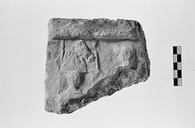 | Description: | Broken away on right side and below. In the upper left corner a horse's head, framed, to right; below it, a male head facing right; to right, a woman's head facing right. The scene is crowned by a taenia with slightly concave face. Pentelic marble. | |