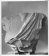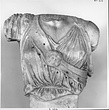 Description:   Preserved from just below the waistline to the neck; left arm broken just below the shoulder; right arm at about 0.09m. from the shoulder. Enough of both arms is preserved to show that the right arm was raised up and out to the side, and that the left was held down.