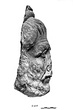 | Description: | Face and part of hair preserved; broken all around; nose and right eye chipped. A portrait head, perhaps a Kosmete. An elderly man with short beard and sideburns and mustache. Deep wrinkles below cheeks; furrowed brow; wide open eyes. The hair hangs over the forehead in pointed strands. On top of the head is a low crown, formed by a plain convex band surmounted by a wreath (?). The surface of the marbles has been burned. The workmanship is not of the best. Pentelic marble. Drilled for setting on base in June 1950. Broken off its base and stolen in December 1963. | |