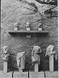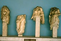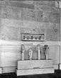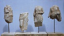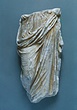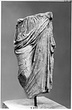 | Description: | A draped figure in high relief, preserved from waist to ankles, with part of the background. The wears a chiton girded high at her waist. Over it, around the lower part of her body, an himation, the top of which forms a heavy fold upwards to the left hip where the end was probably thrown over her left arm, and fell to the ground in heavy folds. The right leg is advanced slightly with the knee bent; the weight is on the left. Quite good cutting, but a little mechanical. Altar of Ares series. Pentelic marble. | |