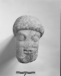 Description:   A small bearded head in archaic style. Nose broken, the break worn smooth; beard somewhat damaged. Detail in general rubbed rather smooth.