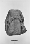 | Description: | Head, right arm, lower left arm, and legs below knees missing. Upper body battered. The figure wears a Doric chitin with kelps. She is standing, the weight is on the left leg, the right knee bent. Traces of a heavy fall of drapery below her left elbow. Sides broken; back of relief smooth. Pentelic marble. With I 4179 and S 762-770 (ΣΑ 192-210) were brought in a number of other small fragments of sculpture, stored among the unnumbered marbles (ΣΑ). | |