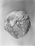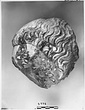 A late Roman portrait head, male, with no facial modeling, the hair in short flat wavy locks, with a well-defined line between the flesh and the hair.