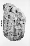 | Description: | Fragment of dedicatory relief. The back of the stele remains. The heads of all the figures battered. The relief shows a partly draped male figure and a draped female figure, standing at the left edge of the representation, facing right. In front of them is an altar, and beside it a small figure carrying a tray of offerings and accompanied by a pig. Pentelic marble. | |