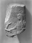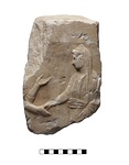 | Description: | Part of side preserved, including potion of shoulder. Low relief on side of lekythos: woman, facing left, is clasping hands with another figure at left, whose hands and lower arms only are preserved, with part of drapery. The woman wears a chiton, and over it an himation which is drawn up over her head at the back. Her face is well preserved, except for nick in forehead. Pentelic marble. | |