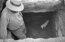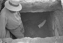 | Description: | The right arm of a very large statue, broken at elbow and wrist. Careful finish but indifferent modeling. Parian marble. | |