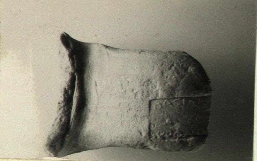 | Description: | Rectangular stamp; two lines; no symbol visible; caduceus(?). | |