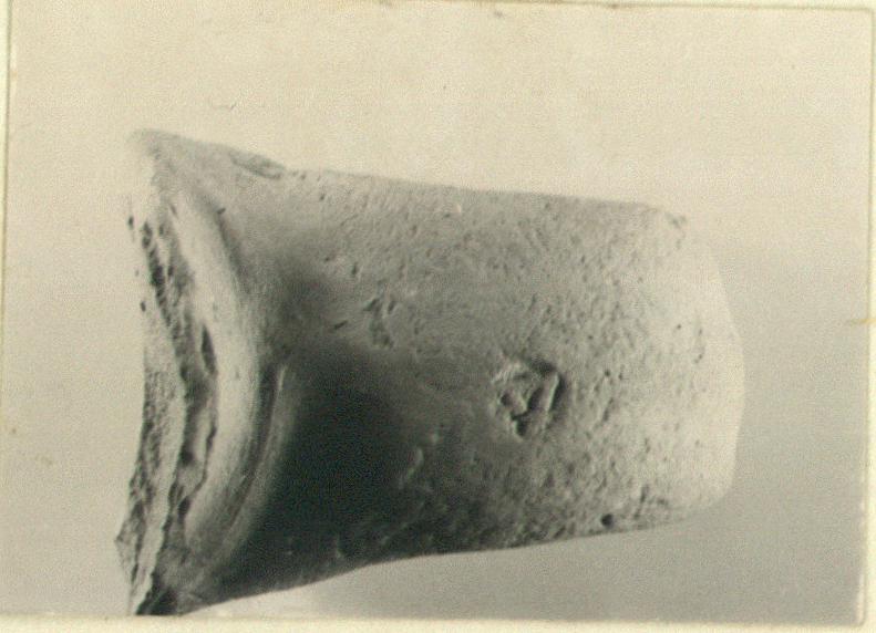 | Description: | Pinkish-buff micaceous clay. Small circular stamp. | |