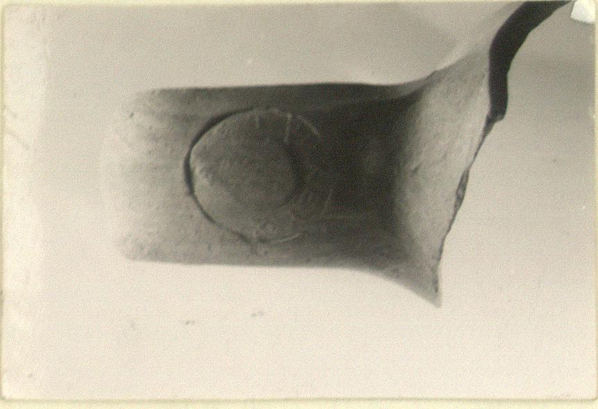 | Description: | Part of neck preserved. Fine buff clay. Circular stamp; rose. | |